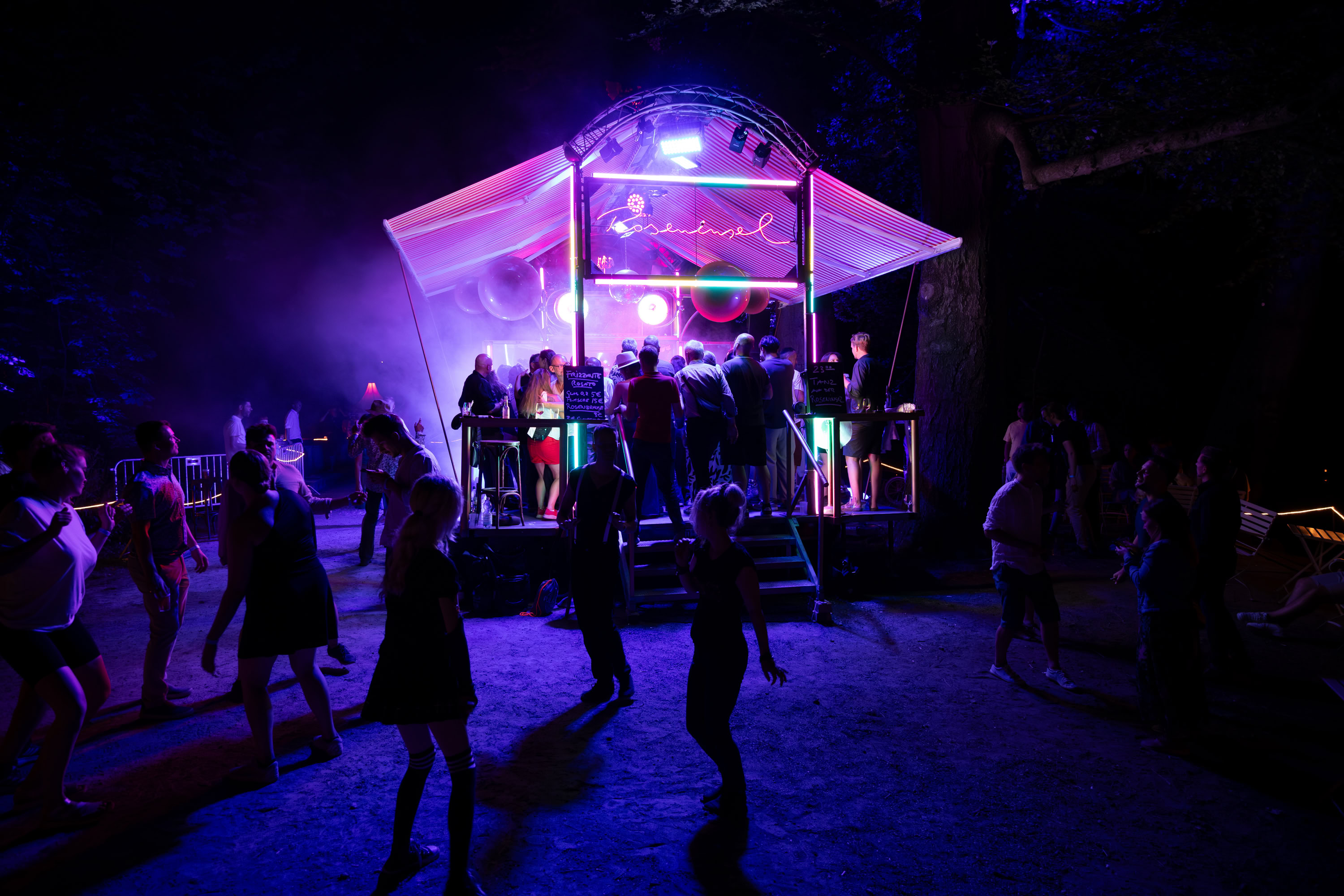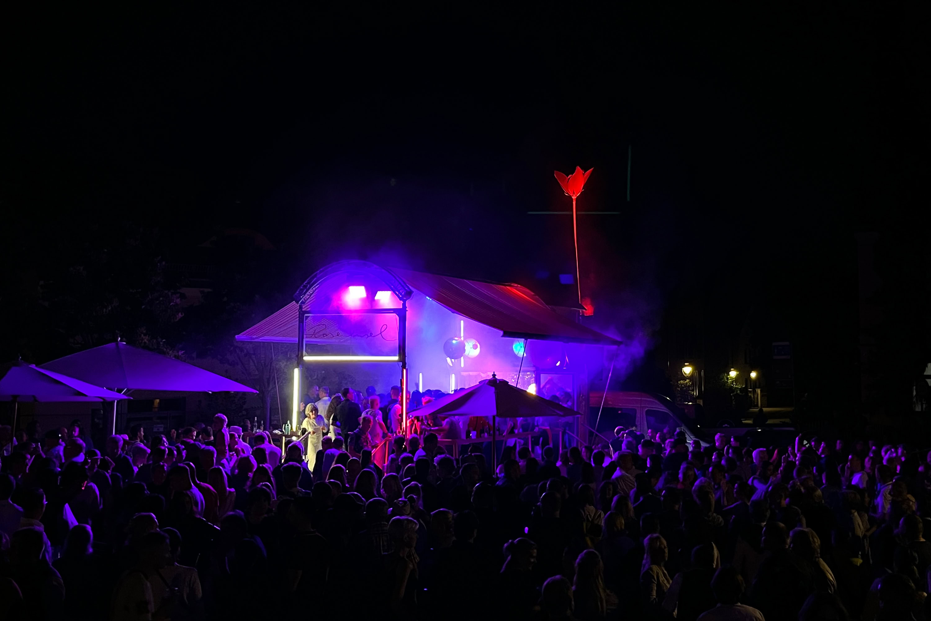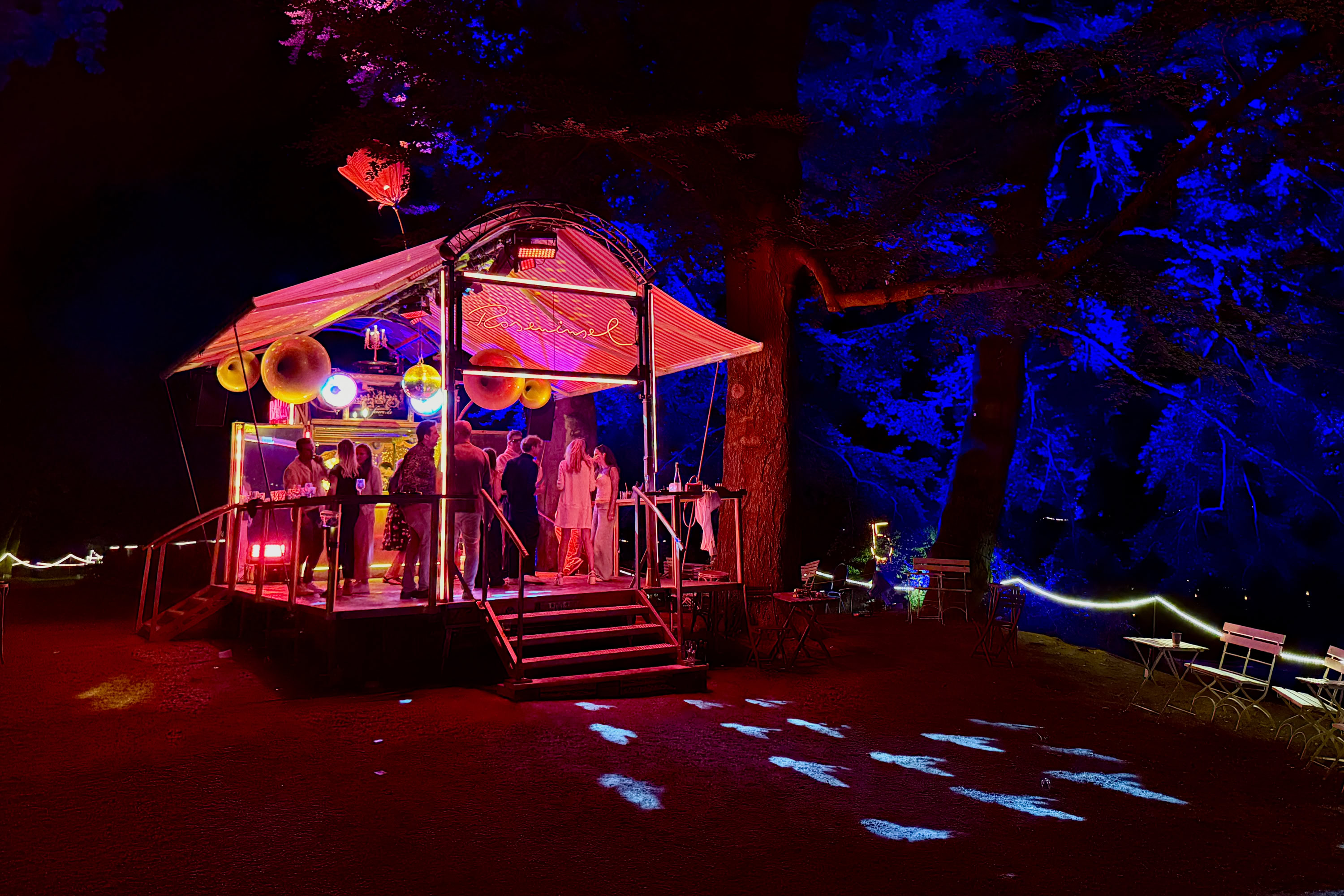 Unsere Roseninsel taucht immer wieder im Meer des Alltäglichen auf und schafft darin beflügelnde Orte. Sie ist eine rollende Bühne mit eigener Technik, ein verzaubernder, mobiler Veranstaltungsort mit Bar, Tanzfläche und ausfahrbarem Dach – flexibel einsetzbar und voll ausgestattet. Mehr über die Roseninsel